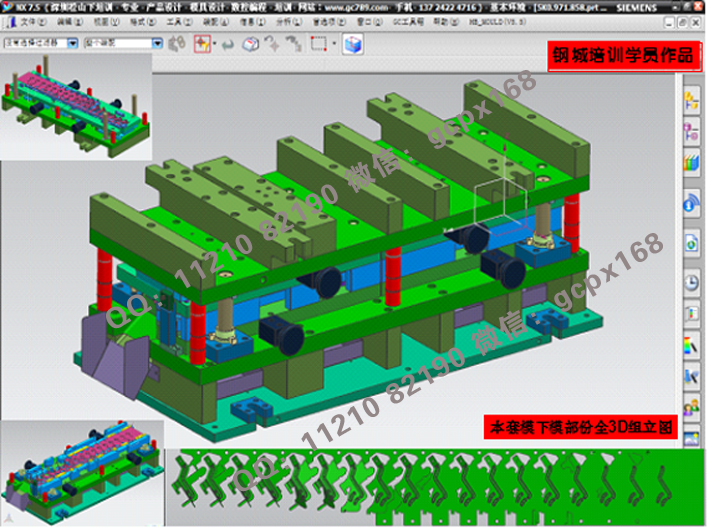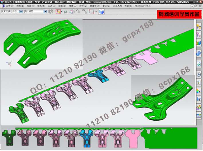 (11) 連續(xù)模設計實操:綜合理論知識,運用實際的模具設計流程(各類圖面處理>模架繪制>細部結構設計>零件圖繪制>出圖),真正實現(xiàn)與工廠的無縫結合;
